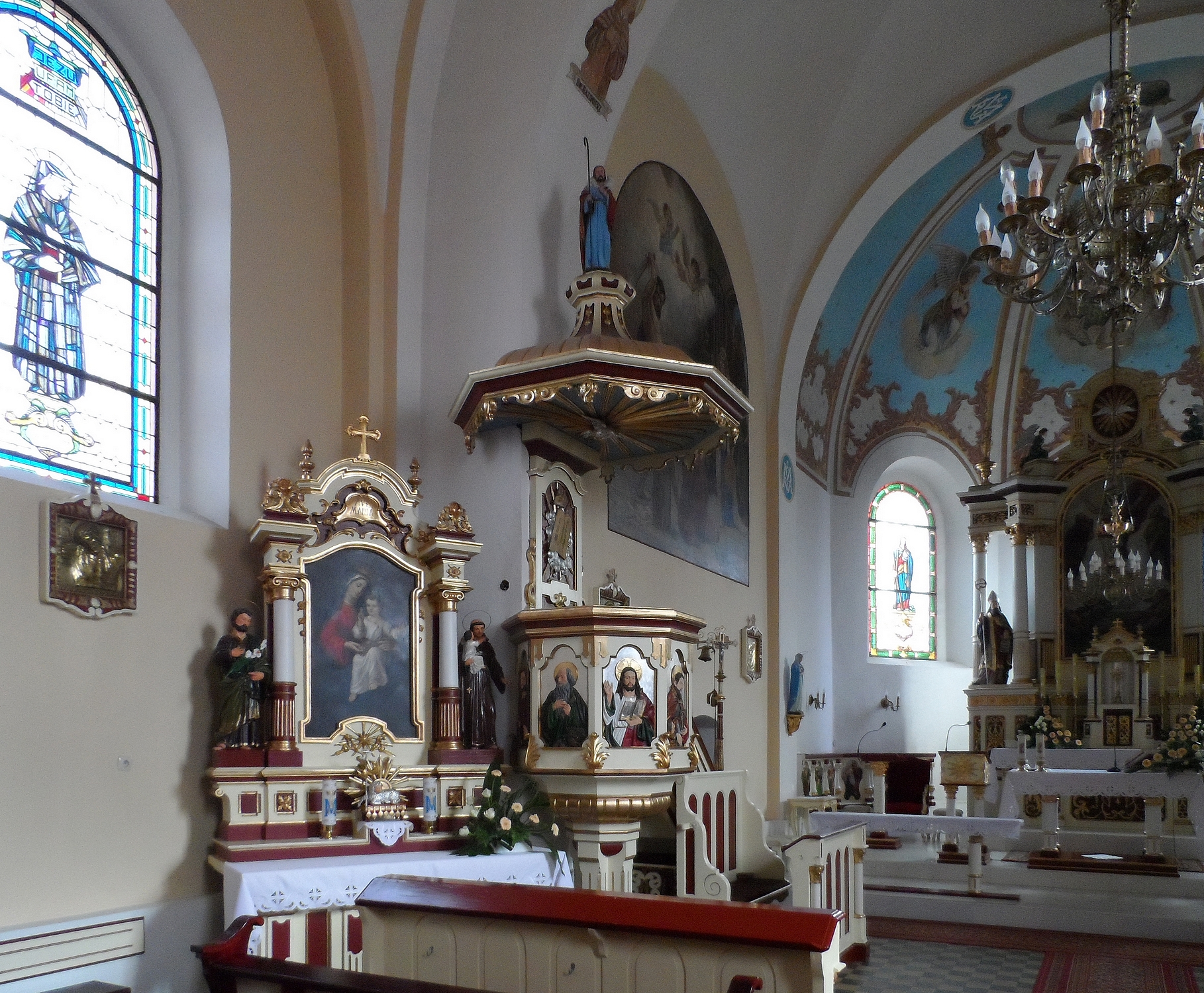 Kościół Przemienienia Pańskiego więcej zdjęć (39) Zbudowano: 1820 Zabytek: A - 652 z 22.12.1989 Kościół p.w. Przemienienia Pańskiego drewniany wybudowany przez Agnieszkę z Potulickich w 1645 roku,w 1820 hrabia Augustyn Grabowski wraz z parafią ufundował nowy murowany na miejscu starego.W 1906 pożar kościoła a w 1908 roku odrestaurowany na starych murach. |