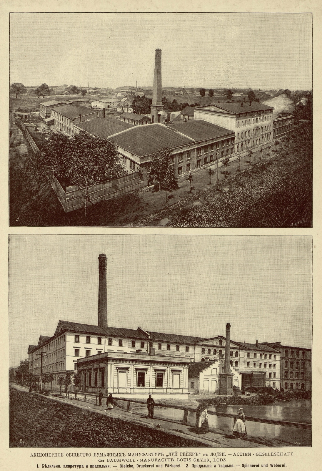W 1835 Ludwik Geyer był już na tyle silnym przedsiębiorcą, że przystąpił do budowy nowej, wielkiej przędzalni i tkalni mechanicznej. W tym celu znów skorzystał z pomocy rządu. Uzyskał w Banku Polskim preferencyjną pożyczkę w wysokości 400 000 złotych. Oprócz tego zaciągnął 175 769 złotych pożyczki kaucyjnej i 24 230 zł pożyczki z kasy miejskiej. Łącznie ze środkami własnymi pozwoliło to na uruchomienie w 1839 najnowocześniejszej fabryki na terenie Królestwa. Geyer zakupił maszyny u najlepszego wówczas producenta, braci Cockerill w Belgii. Wśród tych urządzeń była pierwsza w Łodzi maszyna parowa. Otwarta przędzalnia miała 7 584 wrzeciona i 180 warsztatów tkackich. Same budynki fabryki, rozłożone po obu stronach ulicy Piotrkowskiej, stanowią ciekawy przykład architektury przemysłowej. Wzniesione zostały w stylu klasycystycznym i były wzorowane na budownictwie mieszkalnym.