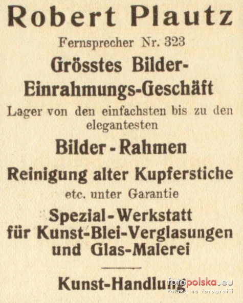 1920 , Robert Plautz - Największy sklep z oprawami obrazów i ramami