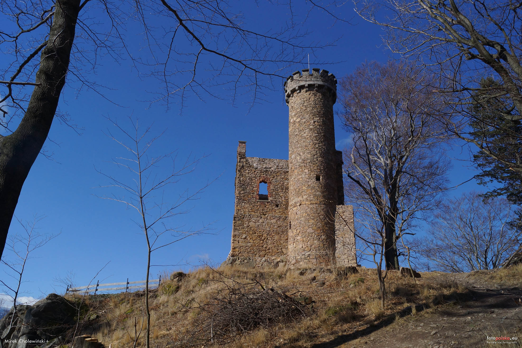 3 pobrania 439 odsłon 6 średnia ocen Poprzednie i następne zdjęcia Mirek Cholewiński Obiekty widoczne na zdjęciu Zamek myśliwski księcia Henryka więcej zdjęć (95) Atrakcja turystyczna Zbudowano: 1842 Dawniej: Heinrichsburg Zabytek: A/1070 z 13.06.2008 Na Grodnej górze wzniesiono ok. roku 1806 wieżę w formach neogotyckich, która była schronem myśliwskim i wieżą widokową. W roku 1842 obiekt przebudowano do kształtu obecnie widocznego. Forma neogotycka pałacu była w ówczesnych czasach niezwykłe modna, była wyrazem sentymentalnego upodobania do komponowania miejsc nastrojowych, pełnych poetyckiej symboliki. Powstanie wieży prawdopodobnie wynikało z zazdrości Henryka von Reuss w stosunku do rodowego zamku Chojnik Schaffgotschów. Na wzgórzu Grodna (504 m n.p.m.), najwyższym wzniesieniu Wzgórz Łomnickich, księże Heinrich LXII von Reuss w 1806 r. rozpoczął wznoszenie zameczku myśliwskiego w postaci romantycznych ruiny. Prace trwały aż do 1842 r. Zameczek wyposażono w basztę, która służyła jako wieża widokowa. Nazwano go od imienia właściciela Heinrichsburg, Obok wieży była sala rycerska. W zameczku rezydował "kasztelan", który za napiwek udostępniał turystom możliwość wejścia na wieżę i podziwiania panoramy. W okresie międzywojennym zameczek opisywano już jako ruinę, ale ciągle dostępną. Dopiero po ostatniej wojnie budowla popadła w całkowitą ruinę, zerwane zostały schody, a zarośnięty szczyt utracił walory widokowe. Góra Grodna (506 m n.p.m) więcej zdjęć (3) |