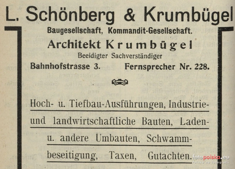 1930 , L. Schönberg i Krumbügel firma budowlana,