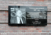 17 kwietnia 2018 , Tablica upamiętniająca prof.dr inż. Antoniego Rosikonia, umieszczona na elewacji budynku.Skomentuj zdjęcie
