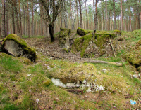Jednosektorowy schron bojowy (G.Br.4) więcej zdjęć (13) Atrakcja turystyczna Zbudowano: 1935 - 1936 Pozycja Pomorska - Odcinek G.Br. (Gross Born) więcej zdjęć (3) Atrakcja turystyczna Zbudowano: 1935 - 1936 Odcinek znajduje się na zachód od Bornego Sulinowa między jeziorem Pile a jeziorem Długie. Na długości ok. 3 km wybudowano 12 żelbetonowych schronów bojowych. Wszystkie w tej samej klasie odporności C oraz jedno stanowisko obrony okrężnej typu Ringstand 58c. Z pozostałości schronów widać, iż zastosowano w nich odcinkowe zgrubienia ścian w miejscach gdzie wewnątrz schronów występują nisze, które zaczęto stosować w 1936 roku. Takie same zgrubienia występują także na sąsiadującym od południa odcinku Pil. (Pilowmuhle), który wybudowany został w tymże roku. Występują tu dwa rodzaje schronów: pierwszy to jednoizbowy schron bojowy bez wyjścia awaryjnego, drugi to jednosektorowy schron bojowy z pomieszczeniem dla drużyny piechoty. Poszczególne schrony mogą się nieznacznie różnić np. rozmieszczeniem wyposażenia socjalnego (piecyków, wentylatorów), rodzajem niektórych pancerzy (wewnętrznej obrony wejścia), czy w schronach jednoizbowych umieszczeniem wejścia (na ścianie tylnej lub bocznej). Linię umocnień wykonanych w 1944 roku znacznie wysunięto przed schrony bojowe, które przez to nie zostały skomunikowane transzejami. Obiekty wysadzone w powietrze po II wojnie światowej. |