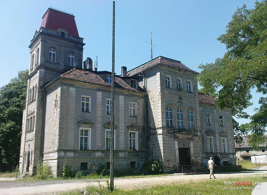2 pobrania 2303 odsłony 5.22 średnia ocen Poprzednie i następne zdjęcia McAron Obiekty widoczne na zdjęciu Pałac więcej zdjęć (8) Zbudowano: 1870 Dawniej: Schloss Zabytek: 3196 z 27.12.1983 Neorenesansowy pałac został zbudowany na planie prostokąta. Budynek dwukondygnacyjny z wysokim podpiwniczeniem i wielospadowym dachem. Od strony ogrodowej (południowej) czterokondygnacyjna wieża. Elewacje bogato udekorowane. Podział elewacji to gzyms cokołowy i podokienny (profilowany) oraz gzyms wieńczący (gładki). Otwory okienne pierwszej kondygnacji prostokątne, otoczone profilowanymi obramieniami i zwieńczone trójkątnymi naczółkami; drugiej kondygnacji - ujęte w taśmowe opaski. Trzykondygnacyjny ryzalit trzyosiowy z wejściem głównym umieszczony centralnie w dziewięcioosiowej elewacji frontowej (wschodniej). Otwór wejściowy ujęty portalem złożonym z dwóch pilastrów dźwigających trójkątny fronton. Na wysokości drugiej kondygnacji trzy okna zamknięte łukiem. Otwory okienne zdobione profilowanymi opaskami, zaś nad środkowym został umieszczony kartusz herbowy. Parterowa przybudówka od strony zachodniej. Źródło: |