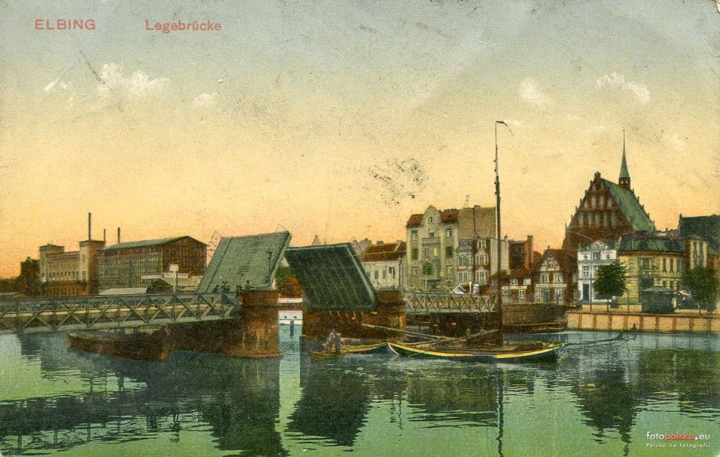 Dla połączenia Starego Miasta z Wyspą Spichrzów od zarania istniały dwa promy i most Hohe Brücke. Później, pod koniec wieku XVI (czasy Anglików w Elblągu) zbudowano w górze rzeki most Leegen-Brücke i blisko niego bramę i wieżę wagową z dużą, nową wagą.