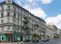 0 pobrań 522 odsłony 6 średnia ocen Poprzednie i następne zdjęcia bonczek_hydroforgroup Obiekty widoczne na zdjęciu ul. Trzebnicka więcej zdjęć (566) Dawniej: Trebnitzer Strasse Ulica Trzebnicka we Wrocławiu – jedna z arterii wylotowych, prowadzących od Starego Miasta na północ, w kierunku Trzebnicy. Zaczyna się na placu św. Macieja, a kończy na mostach Trzebnickich przez Starą Odrę. Przebiega przez osiedle Kleczków (część dawnego Przedmieścia Odrzańskiego). Przedłużeniem ulicy Trzebnickiej za mostami Trzebnickimi jest ul. Żmigrodzka, przecinająca Karłowice i Poświętne. Długość ulicy wynosi 1,1 km; w połowie długości, przy pl. Powstańców Wielkopolskich, przecina ją wiadukt kolejowy. Południowy odcinek jezdni ulicy Trzebnickiej (do pl. Powstańców Wielkopolskich) jest stosunkowo wąski (po jednym pasie ruchu w obu kierunkach, bez tramwaju); odcinek północny jest szerszy i mieści także tory tramwajowe. W przeszłości część dzisiejszej ulicy Trzebnickiej (od pl. Powstańców Wielkopolskich do mostów Trzebnickich) stanowiła fragment Szosy Trzebnickiej (niem. Trebnitzer Chausee). Dawna rogatka miejska (Trebnitzer Barriere) zlokalizowana była w pobliżu skrzyżowania z ul. Ołbińską. Po roku 1868, w związku z budową linii kolejowej Prawego Brzegu Odry i korekcie sieci ulicznej (związanej także z wytyczonym w 1873 na dawnym Polu Maciejowym – Mathiasfeld – placem św. Macieja) przebieg nowo utworzonej Trebnitzerstraße przybrał współczesny kształt ulicy Trzebnickiej. Wybudowane wzdłuż ulicy budynki w większości powstały przed rokiem 1910 i podczas oblężenia Festung Breslau w 1945 prawie wszystkie przetrwały w stopniu, pozwalającym ich odbudowę; jest to jedna z nielicznych ulic miasta, których stuletnia zabudowa zachowała się w tak dużym stopniu do XXI wieku. Prócz kamienic mieszkalnych – w większości 5- i 6-kondygnacyjnych, często ze zlokalizowanymi na parterze lub w suterenie sklepami i małymi zakładami usługowymi – wzdłuż ulicy Trzebnickiej wybudowano m.in. w latach 1894-1895 gmach przytułku Fundacji Claasseena (wg projektu Richarda Plüddemanna, pod numerem 25-27, pomiędzy ul. św. Wincentego a Ołbińską, dziś szpital MSW), szkołę (1905-1908, projekt R. Plüddemanna i Ch. Cabanisa, pod numerem 42-44, przy skrzyżowaniu z ul. Dębickiego i z ul. Kleczkowską, dziś Kolegium Nauczycielskie), a także gazownię miejską (nr 35, projekt i budowa – rok 1881 i następne, dziś Zakład Energetyczny) i jej budynek administracyjny (nr 33, rok 1938, dziś urząd skarbowy dzielnicy Psie Pole). Źródło: Autorzy: Licencja: CC-BY-SA 3.0 |