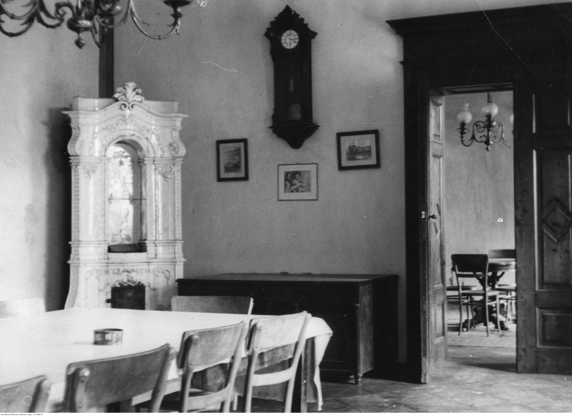 1932 , Chorkówka - pałacyk Ignacego Łukasiewicza . Fragment wnętrza z widocznym ozdobnym piecem.Skomentuj zdjęcie |