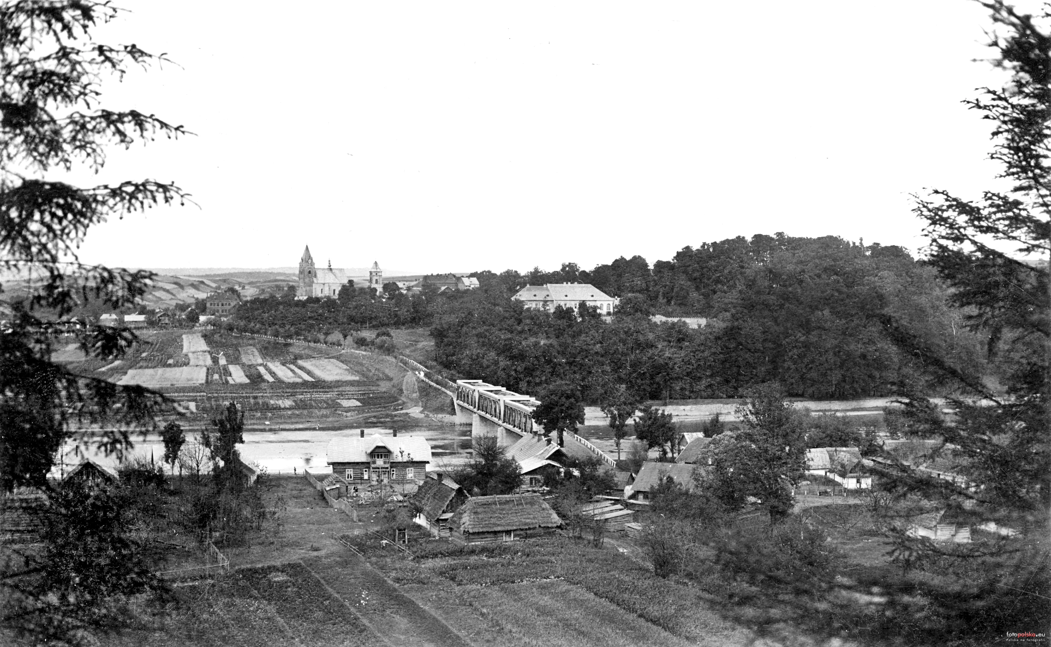 Lata 1919-1925 , Lesko -panorama. Widoczny m.in. most na Sanie i fragment zabudowy miejscowości Huzele.Skomentuj zdjęcie
