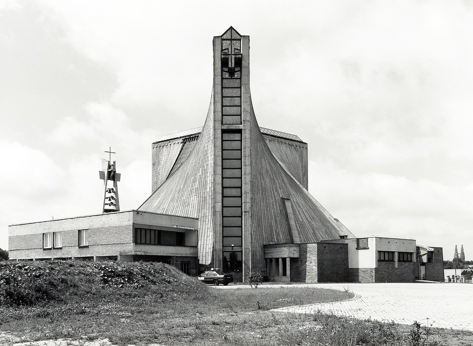 Kościół św. Józefa Robotnika więcej zdjęć (8) W 1978 roku ks. Prałat Jan Kozak proboszcz Parafii św. Bonifacego w Zgorzelcu uzyskuje pozwolenie i rozpoczyna budowę dwupoziomowego kościoła według projektu mgr. arch. Wojciecha Kurowskiego, mgr arch. Aliny Niedźwiedzkiej-Kurowskiej, mgr. inż. Jana Niedźwiedzkiego, projekt konstrukcyjny mgr. inż. Wojciecha Marszałka. Projekt kościoła wzorowany był na Katedrze Najświętszej Marii Panny w Tokio.[potrzebny przypis] W 1981 roku kamień węgielny pochodzący z wykopalisk wokół Grobu Księcia Apostołów wmurował Arcybiskup Metropolita Wrocławski Henryk Gulbinowicz. Parafia została erygowana w 1990 roku przez kardynała Henryka Gulbinowicza po wydzieleniu jej z parafii św. Bonifacego w Zgorzelcu. 1 maja 2000 Biskup Legnicki Tadeusz Rybak poświęcił kościół św. Józefa Robotnika i konsekrował ołtarz[1] ul. Kozaka Jana, ks. więcej zdjęć (9) Dawniej: Pfennigstraße |