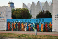 9 sierpnia 2018 , Plac Solidarności. Rocznicowy "mural" na zlecenie.