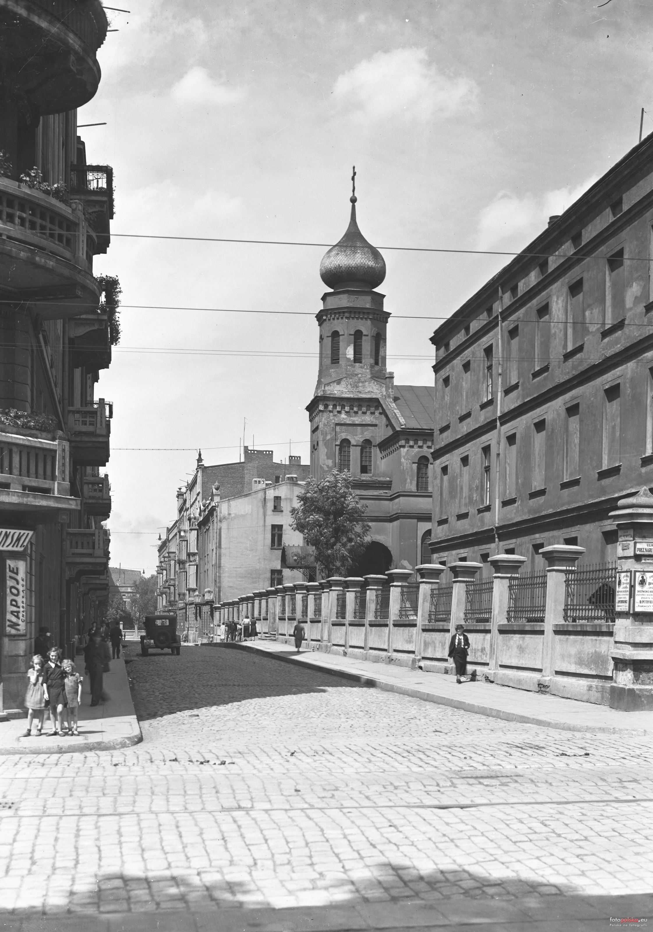 Cerkiew św. Olgi więcej zdjęć (15) Zbudowano: 1896-1898 Zabytek: A/277 z 01.10.1980 W 1896 roku rozpoczęto budowę ochronki dla prawosławnych dzieci. Tuż przy niej zbudowano dużą kaplicę. 16 października 1898 roku dokonano poświęcenia cerkwi pw. św. Olgi. Projekt wykonany przez architekta miejskiego Franciszka Chełmińskiego. Cerkiew ta jest budynkiem jednonawowym, zbudowanym na planie prostokąta z prezbiterium. Elewacje podzielone zostały lizenami. Na osi świątyni znajduje się nakryta hełmem wieża, w której znajduje się wejście główne. Cebulasty hełm to jedyny element budynku mający związek z architekturą rosyjsko-bizantyjską. Do 1954 roku cerkiew stanowiła część sierocińca, przez który wchodziło się do świątyni. Ikona z wizerunkiem św. Olgi, księżnej kijowskiej, wisi po lewej stronie ołtarza. Świątynia znajduje się w odległości kilkuset metrów od cerkwi katedralnej pw. św. Aleksandra Newskiego. ul. Piramowicza Grzegorza więcej zdjęć (36) Dawniej: Olgińska |
