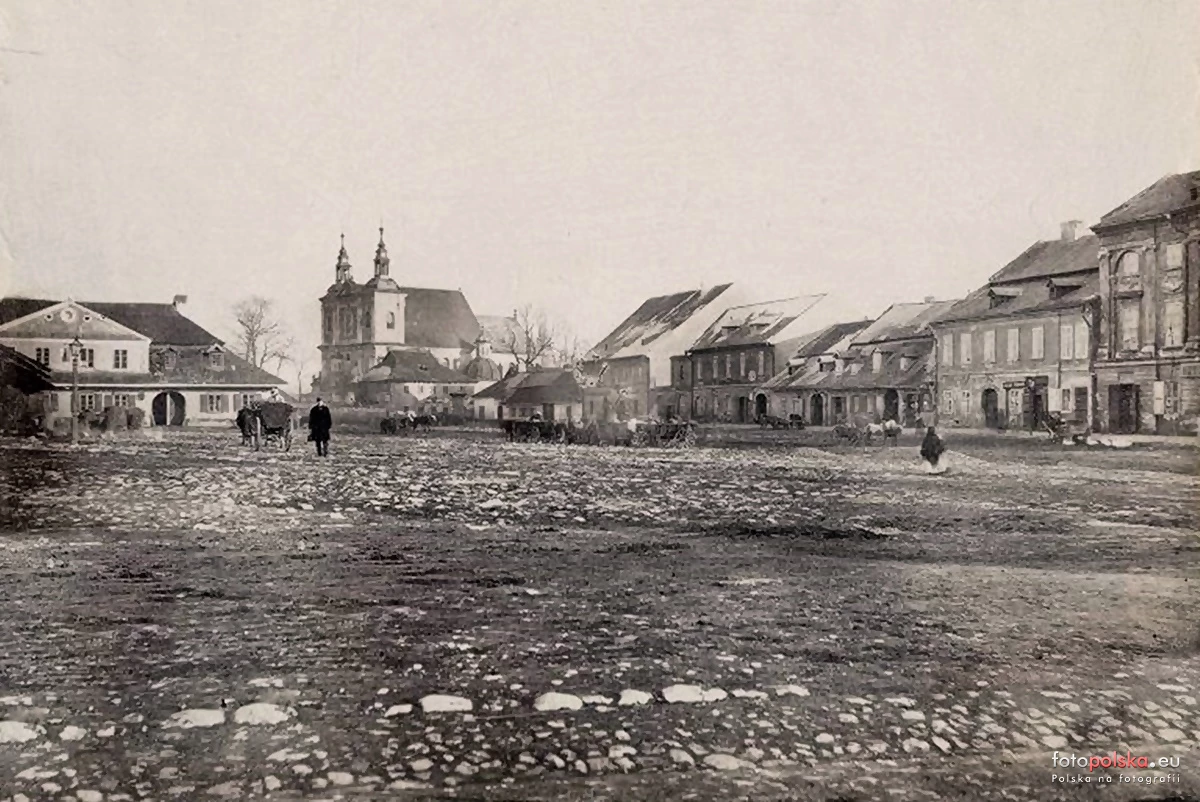 1884 , Rynek Kleparski (ob. pl. Matejki) po lewej dworek, w którym mieściła się szkoła miejska, wyburzona w 1886 (w związku z budową gmachu Dyrekcji Kolei) kościół św. Floriana z budynkiem szkoły parafialnej.Skomentuj zdjęcie