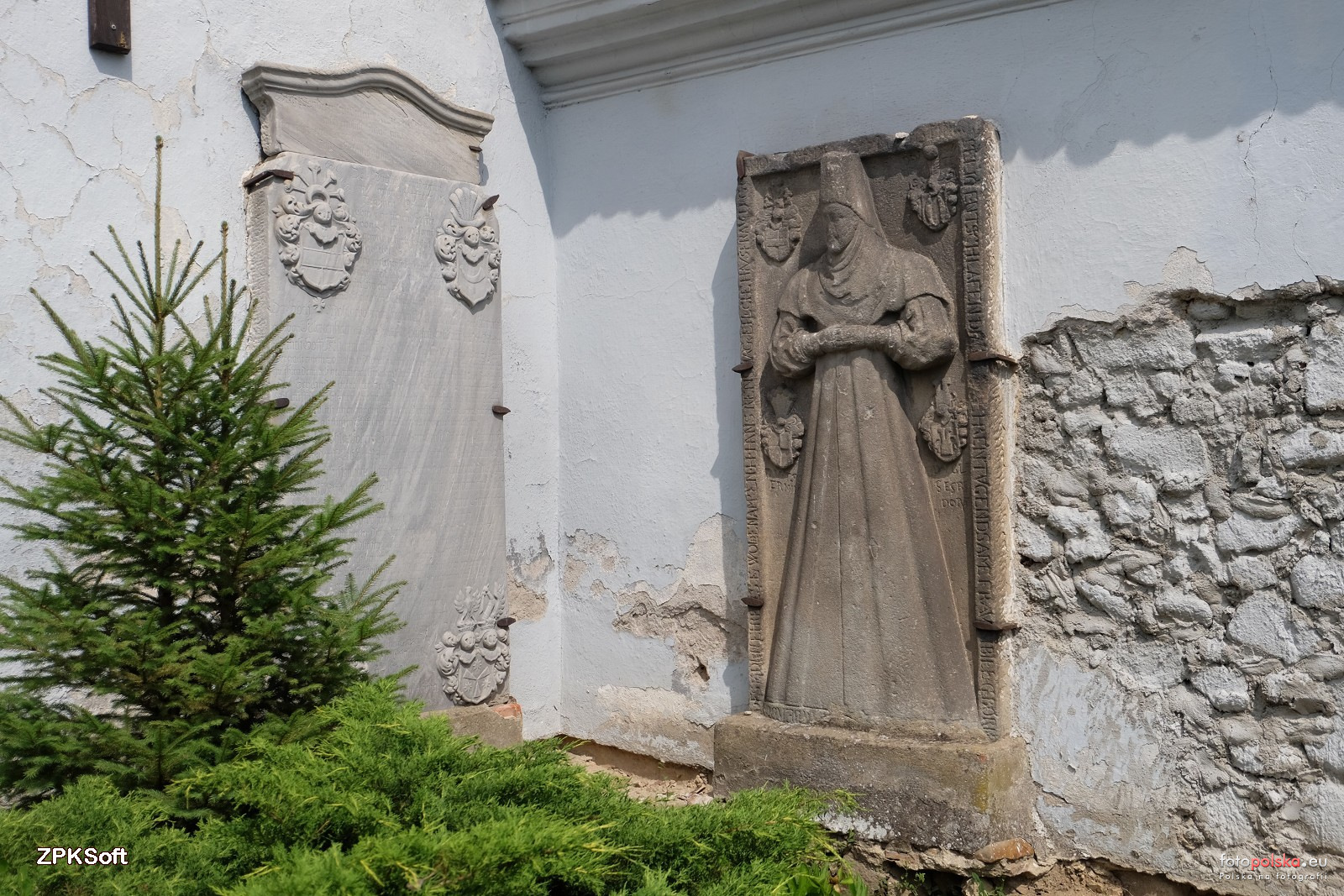 21 lipca 2018 , Kościół św. Bartłomieja wzniesiony został na przełomie XV i XVI w., z tego okresu pochodzi wieża. Przebudowywany w 1730 i 1812 r. W latach 1575-1653 należał do protestantów. Na zdjęciu epitafia na murze świątyni.Skomentuj zdjęcie |