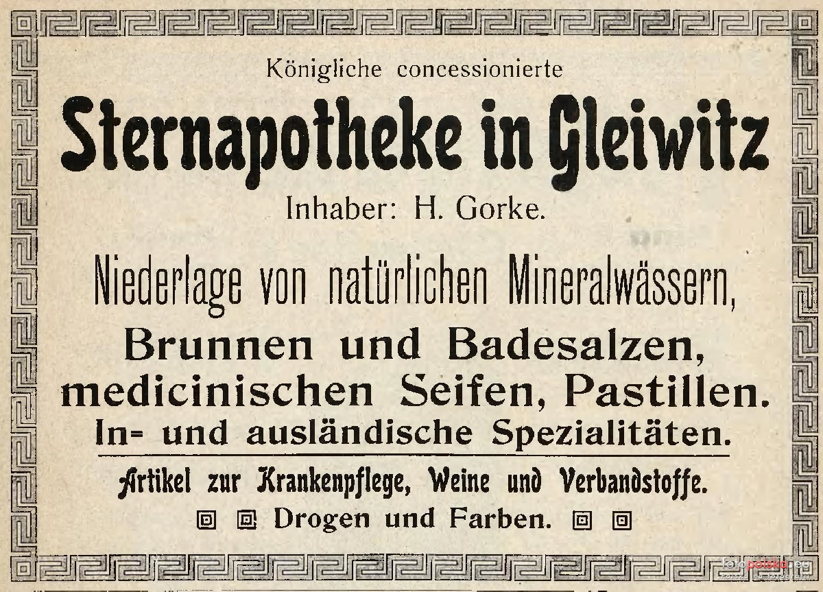 1907 , Reklama Apteki. Źródło: Festschrift zur Feier des 2. Bundesfestes des Oberschlesischen Arbeiter-Sängerbundes, 1907Skomentuj zdjęcie |