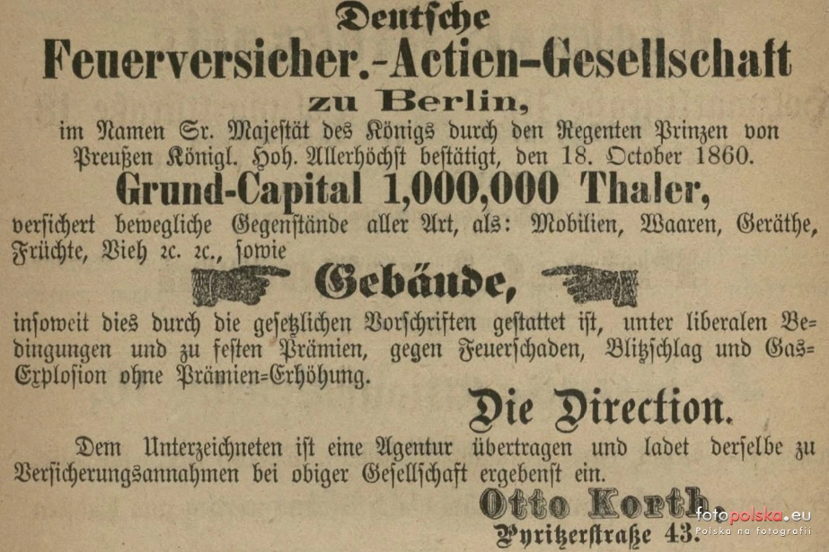 1878 , Niemieckie Towarzystwo Ubezpieczeń Przeciwpożarowych w Berlinie,