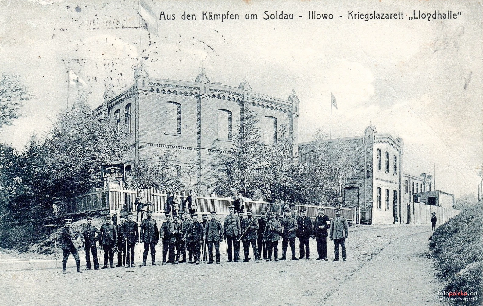 1915 , Urząd Imigracyjny przy ul. Leśnej w czasie I WŚ służył jako lazaret wojenny. W głębi istniejący budynek Leśna 3.Skomentuj zdjęcie