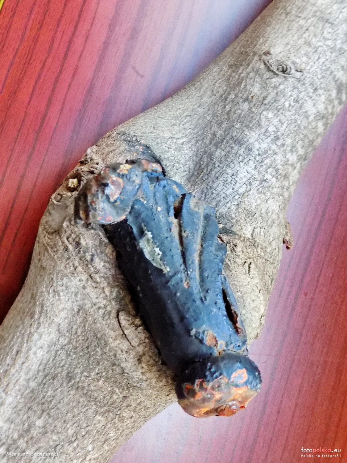 1 września 2024 , Metalowy fragment ogrodzenia nagrobka wrośnięty w konar bzu.Skomentuj zdjęcie |