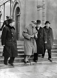 20 marca 1935 , Jedna z ostatnich fotografii już wtedy ciężko chorego marszałka Piłsudskiego. Marszałek opuszcza budynek Dworca Wschodniego po powrocie z Wilna, gdzie spędził swoje ostatnie imieniny. Pierwszy z prawej idzie minister komunikacji Michał Butkiewicz. Pierwszy z lewej minister spraw wewnętrznych Marian Zyndram-Kościałowski. Fot.Skomentuj zdjęcie