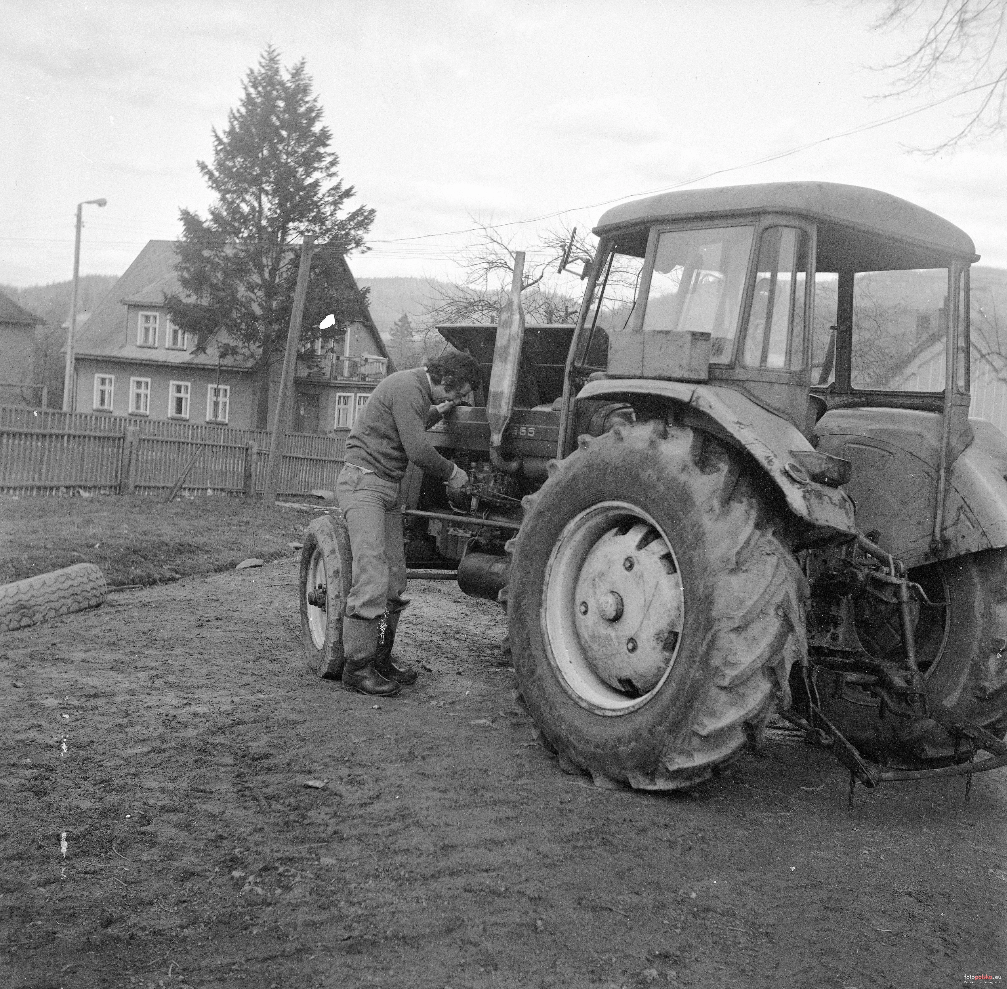 marzec 1976 , Ciągnik Ursus C-355 na terenie gospodarstwa przy ulicy Świętej Anny 9,. Po lewej w tle dom nr 8.Skomentuj zdjęcie |