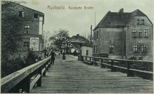 14 pobrań 1592 odsłony 6 średnia ocen Poprzednie i następne zdjęcia Dana Obiekty widoczne na zdjęciu Całkowicie z drewna zbudowany most o długości ok. 240m, łączył Mysłowice (Niemcy) z Modrzejowem (Rosja). Spinał on obydwa brzegi granicznej rzeki Przemszy służąc jako przejście graniczne dla ruchu pieszego i kołowego z obydwu sąsiedzkich krajów. Na jesień przekraczały ten most ogromne stada gęsi (czasami do 100 000 sztuk dziennie). W gęsim marszu poprzez ulice miasta defilowały aż do załadunku na wagony kolejowe. Na moście znajdował się rosyjski posterunek graniczny. Pruski posterunek graniczny więcej zdjęć (12) ul. Krakowska więcej zdjęć (173) Dawniej: Nowokościelna |