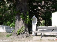 9 maja 2009 , Najstarsza, datowana (na 1494 r.) kapliczka pokutna w Polsce, pomnikowe drzewo i przedwojenna ławeczka obok (historia kapliczki w opisie obiektu).Skomentuj zdjęcie