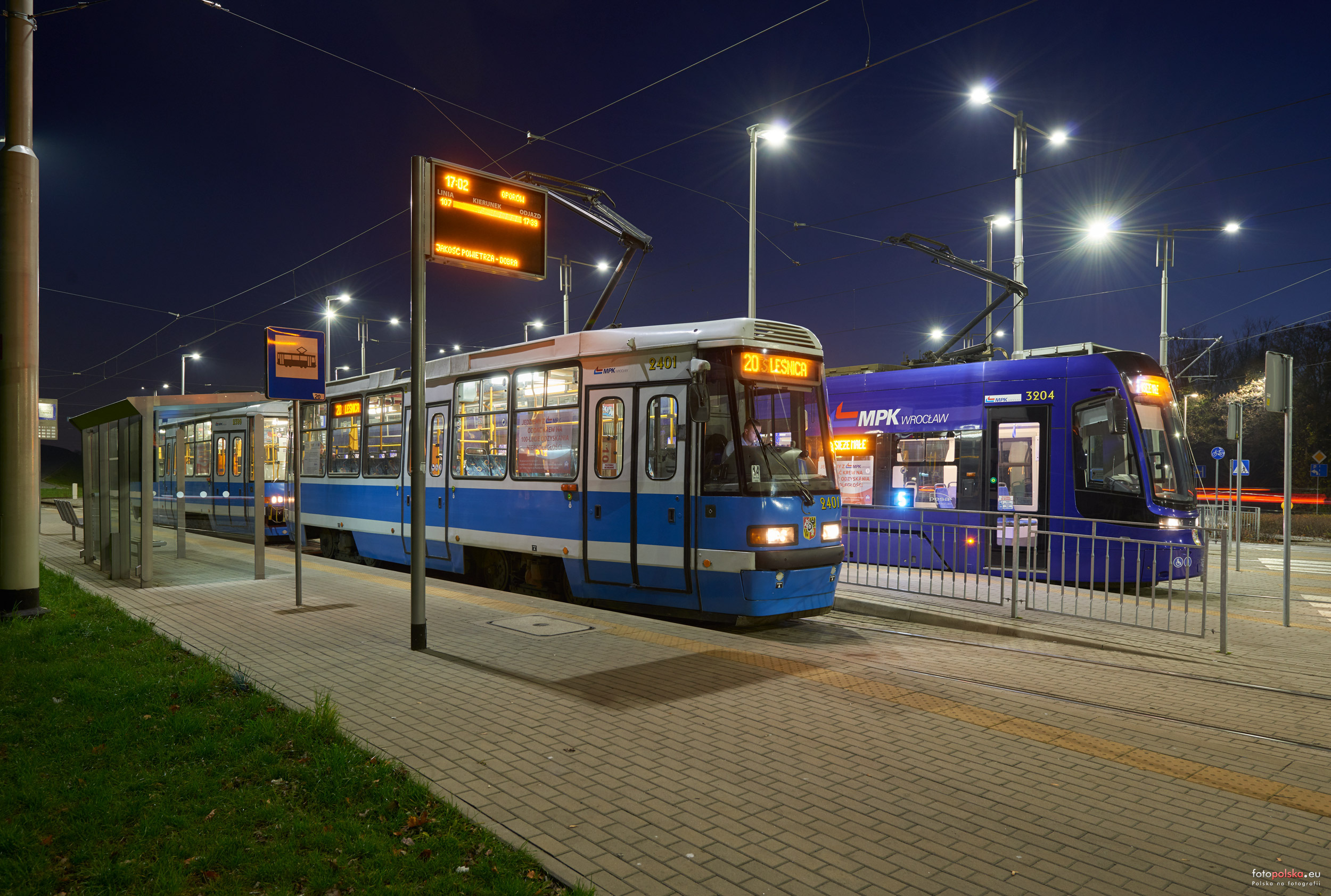 17 listopada 2018 , Tramwaje linii 20 i 5 na pętli tramwajowej (tramwajowo-autobusowej?) "Oporów".Skomentuj zdjęcie