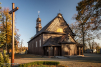 0 pobrań 727 odsłon 6 średnia ocen Poprzednie i następne zdjęcia s_mile Obiekty widoczne na zdjęciu Kościół Narodzenia Najświętszej Maryi Panny więcej zdjęć (8) Zbudowano: 1784-1786 Zabytek: 578/kl.IV-73/63/54 z 19.05.1954 Parafia w Ociążu została utworzona prawdopodobnie na przełomie XIII i XIV wieku. Istnienie drewnianego kościoła parafialnego w Ociążu znajduje potwierdzenie w źródłach w 1434 roku. Po jego zniszczeniu, proboszcz Andrzej Cichawski z pomocą właściciela Ociąża – dziedzica Lutomirskiego w roku 1698 odbudował drewnianą świątynię, którą konsekrował w roku 1701 biskup sufragan Wierzbowski. Po pożarze w roku 1784, staraniem ówczesnego patrona i parafian wzniesiono obecny drewniany kościół, poświęcony w 1786 roku. Jest on pod wezwaniem Narodzenia Najświętszej Maryi Panny. Kościół usytuowany jest w zachodniej części wsi, wzniesiony na terenie cmentarza parafialnego, orientowany na linii wschód-zachód, z prezbiterium zwróconym ku wschodowi i wejściem głównym od zachodu. W roku 1927 kościół został powiększony ku zachodowi: przedłużono główną nawę, dobudowano wejście główne i równoległe kruchty boczne, a nad nimi chór organowy. Jednocześnie od strony południowej dobudowano murowaną zakrystię oraz otynkowano wnętrze kościoła. 19 maja 1954 roku kościół został wpisany do rejestru zabytków Drewniane ściany prezbiterium i nawy mają konstrukcje zrębową i są obustronnie szalowane. Kościół wewnątrz tynkowany otrzymał w 1980 roku modrzewiową boazerię. Szczyt dobudowanej w 1927 roku części zachodniej jest obramowany listwami i ślimacznicami z XVIII wieku. Umieszczony jest na nim drewniany krzyż pochodzący z tego samego okresu. Dwuspadowy dach kościoła pokryty jest drewnianymi gontami. Nad środkową częścią nawy wznosi się ośmiokątna wieżyczka na sygnaturkę, po gruntownym remoncie w 1999 roku pokryta blachą miedzianą. W roku 2003 w kościele została położona nowa, dębowa podłoga, w roku 2004 wstawione nowe, dębowe ławki i założone ogrzewanie ławkowe, w roku 2006 zostały zawieszone dwa nowe żyrandole oraz poświęcony nowy dębowy ołtarz i ambonka, a w latach 2006/2007 przy okazji wymiany zewnętrznego odeskowania kościół został ocieplony. Obok kościoła wznosi się drewniana dzwonnica konstrukcji słupowej, szalowana, o dachu namiotowym, postawiona w 1948 roku w miejsce poprzedniej z roku 1804. W dzwonnicy zawieszono dwa dzwony (od 1987 roku o napędzie elektrycznym): większy, z napisem „Św. Antoni, módl się za nami. R.P.1948”, oraz mniejszy (80 kg), imieniem „Maryja” zawieszony 26 sierpnia 1976 roku dla upamiętnienia Nawiedzenia Obrazu Matki Bożej Jasnogórskiej w parafii Ociąż. (część opisu pochodzącego ze strony domowej parafii ) ul. Kościelna więcej zdjęć (10) |