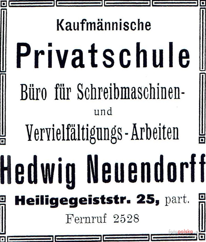 W latach 30 - Prywatna Szkoła Biznesu prowadzona przez Panią Hedwig Neuendorf.