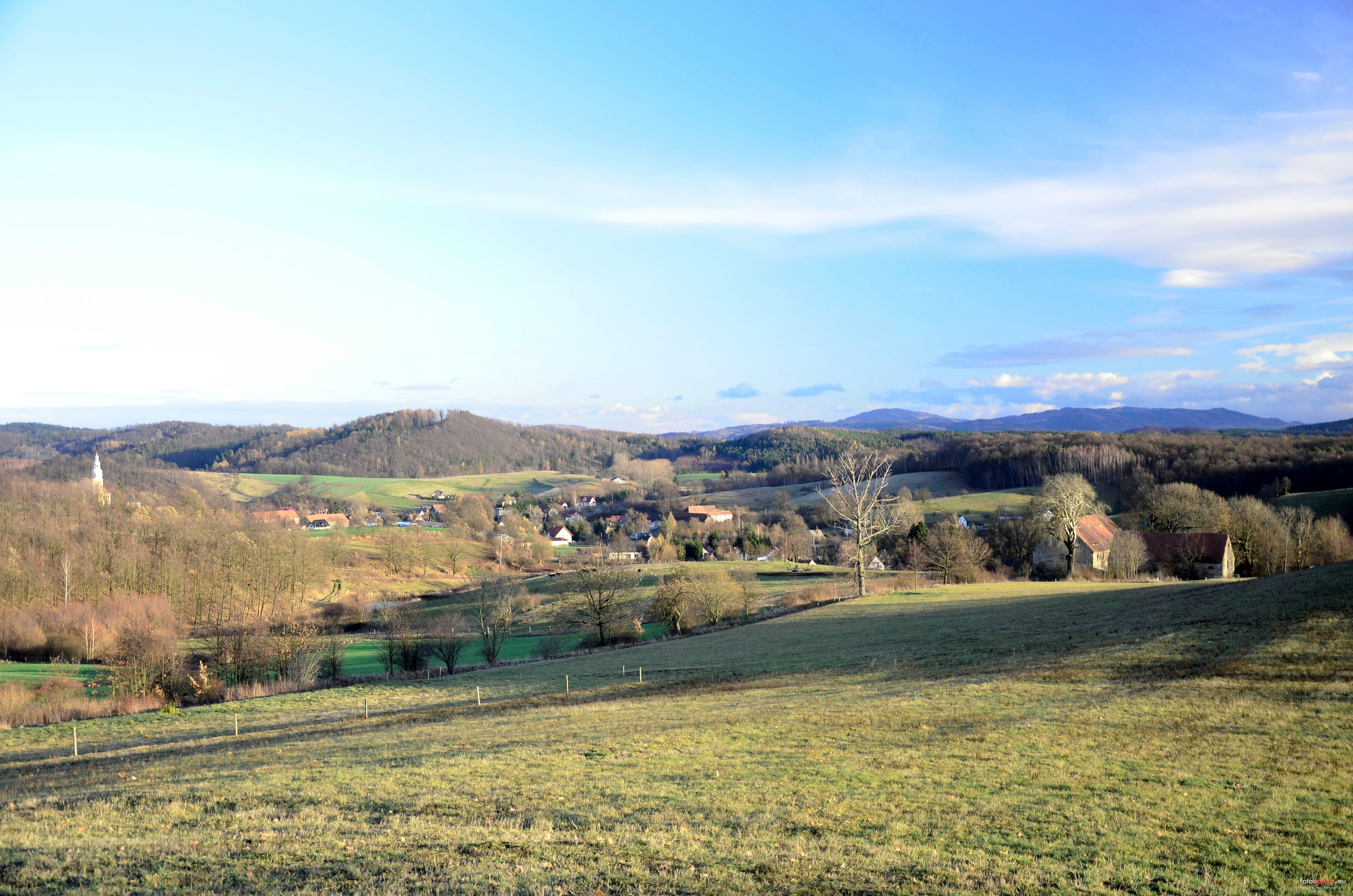 8 grudnia 2018 , Panorama Pławnej Górnej (jej środkowa część) od strony zachodniej, na wschodzie wybija się "Masyw Okola"- znacznik.Skomentuj zdjęcie |