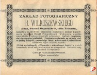 1897 , Reklama zakładu fotograficznego B. Wilkoszewskiego. Pochodzi ona z "Przewodnika ilustrowanego po Warszawie, Łodzi i okolicach fabrycznych" z 1897 r.Skomentuj zdjęcie