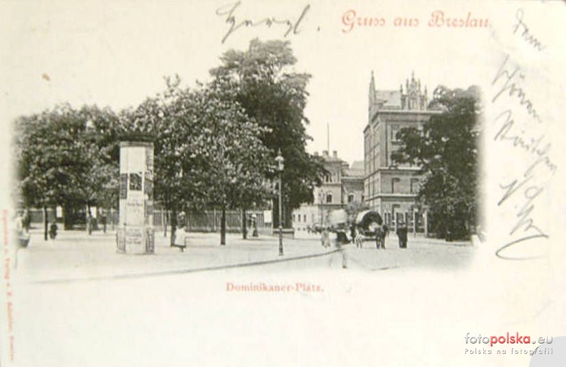 7 pobrań 1881 odsłon 5.92 średnia ocen Poprzednie i następne zdjęcia wito, Obiekty widoczne na zdjęciu pl. Dominikański więcej zdjęć (812) Dawniej: Dominikaner Platz Plac Dominikański we Wrocławiu (niem. Dominikanerplatz) - jeden z głównych placów Wrocławia. Pierwotny plac Dominikański przylegał do południowej elewacji dominikańskiego kościóła św. Wojciecha, a zatem znajdował się na przedłużeniu ulicy Wita Stwosza pomiędzy ulicami bł. Czesława i Klemena Janickiego. Przy budowie nowego hotelu (Mercure) zrekonstruowano w przybliżeniu dawny obrys placu. Krótko po II wojnie światowej przetłumaczono niemiecką nazwę placu na plac Dominikański, lecz w dobie stalinizacji w końcu lat 40. otrzymał on imię współtwórcy aparatu stalinowskiego państwa, Feliksa Dzierżyńskiego. Po usunięciu zgliszczy przyległego do południowej strony placu kwartału (w miejscu dawnej wewnętrznej fosy) teren sięgający aż po ulicę Oławską splantowano i zamieniono w zieleniec i parking, zaś po jego wschodniej stronie wzniesiono w początku lat 70. XX w. według projektu typowego hotel Panorama. Termin plac Dzierżyńskiego rozciągnął się tym samym na cały, większy od Rynku, areał, włączając w to skrzyżowanie ulic Oławskiej, Piotra Skargi i Kazimierza Wielkiego. W 1991 przywrócono placowi historyczną nazwę, w świadomości mieszkańców i na wielu planach plac znajduje się jednak zasadniczo na wymienionym skrzyżowaniu, a zatem około 200 m od pierwotnego położenia. Pod placem znajduje się tunel dla ruchu kołowego będący częścią trasy W-Z oraz dwa przejścia podziemne dla pieszych. Źródło: Autorzy: Licencja: CC-BY-SA 3.0 |