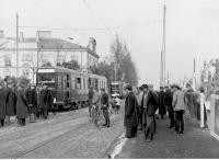 26 października 1933 , Tramwaje na stacji krańcowej przy Cmentarzu Bródnowskim (Bródzieńskim) na ul. Św. Wincentego.