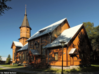 0 pobrań 754 odsłony 6 średnia ocen Poprzednie i następne zdjęcia Rafał T Obiekty widoczne na zdjęciu Kościół Przemienienia Pańskiego więcej zdjęć (4) Atrakcja turystyczna Zbudowano: 1905,1923 Dawniej: Cerkiew prawosławna Przemienienia Pańskiego Zabytek: A/1367 z 13.10.1993 Cerkiew prawosławna p.w. Przemienienia Pańskiego z 1905 r. Zbudowana wg projektu Władimira Pokrowskiego. W 1923 r. przejęta przez kościół katolicki i przebudowana. Remontowana i przebudowana wielokrotnie w okresie międzywojennym i po 2 wojnie światowej. Gruntowny remont w latach 2003 – 05. Drewniana cerkiew konstrukcji zrębowej. Orientowana. Prezbiterium mniejsze od nawy, zamknięte prostokątnie z dwoma nie wyodrębnionymi zakrystiami po bokach. Nawa dwudzielna o różnych wysokościach. Kruchta kwadratowa od frontu z nadbudowana ośmioboczną wieżą i poprzedzona gankiem wspartym na dwóch słupach. Zwieńczoną blaszanym hełmem ostrosłupowym z iglicą. Dachy kryte blachą. Wewnątrz stropy płaskie. Chór muzyczny wsparty na czterech słupach. Polichromia z 1952 r., autorstwa Reginy Kondrackiej. Uzupełnionej w 1967 r. przez Stefana Justa i Stanisława Borysiaka. Ołtarz główny z 2004 r. z elementami ikonostasu z przeł. XIX i XX w. Dwa konfesjonały z XIX w. Dzwonnica metalowa. Plebania drewniana z 1925 r. za : |