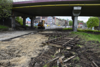 7 maja 2017 , Zerwana bocznica, która prowadziła do rampy kolejowej . Likwidacji torów dokonano podczas przebudowy ul.Hajduka. Dość spory odcinek, oczywiście już niefunkcjonalny, został jednak zachowany. I to chyba jedyna, pozostawiona w tym miejscu, pamiątka świadcząca o dawnym charakterze tego odcinka ulicy.Skomentuj zdjęcie
