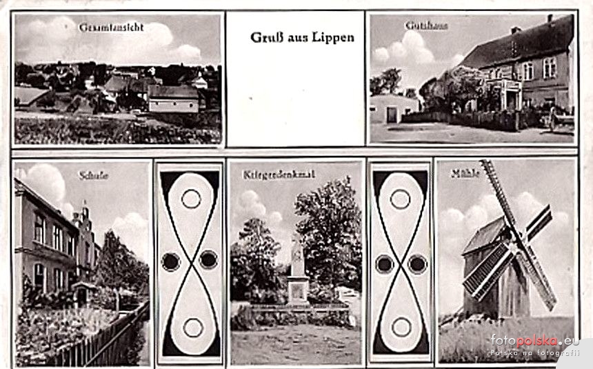 Lata 1930-1931 , Gospoda, szkoła, pomnik ofiar I wojny światowej oraz młyn "wiatrak" w Lipinach.Skomentuj zdjęcie |