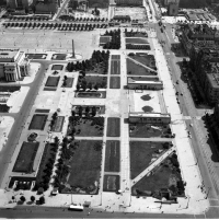 Lata 1959-1960 , Plac i otoczenie Pałacu Kultury i Nauki między ulicami: Marszałkowską, Emilii Plater, Alejami Jerozolimskimi. Widok od ul. E. Plater w kierunku ul. Marszałkowskiej.Skomentuj zdjęcie