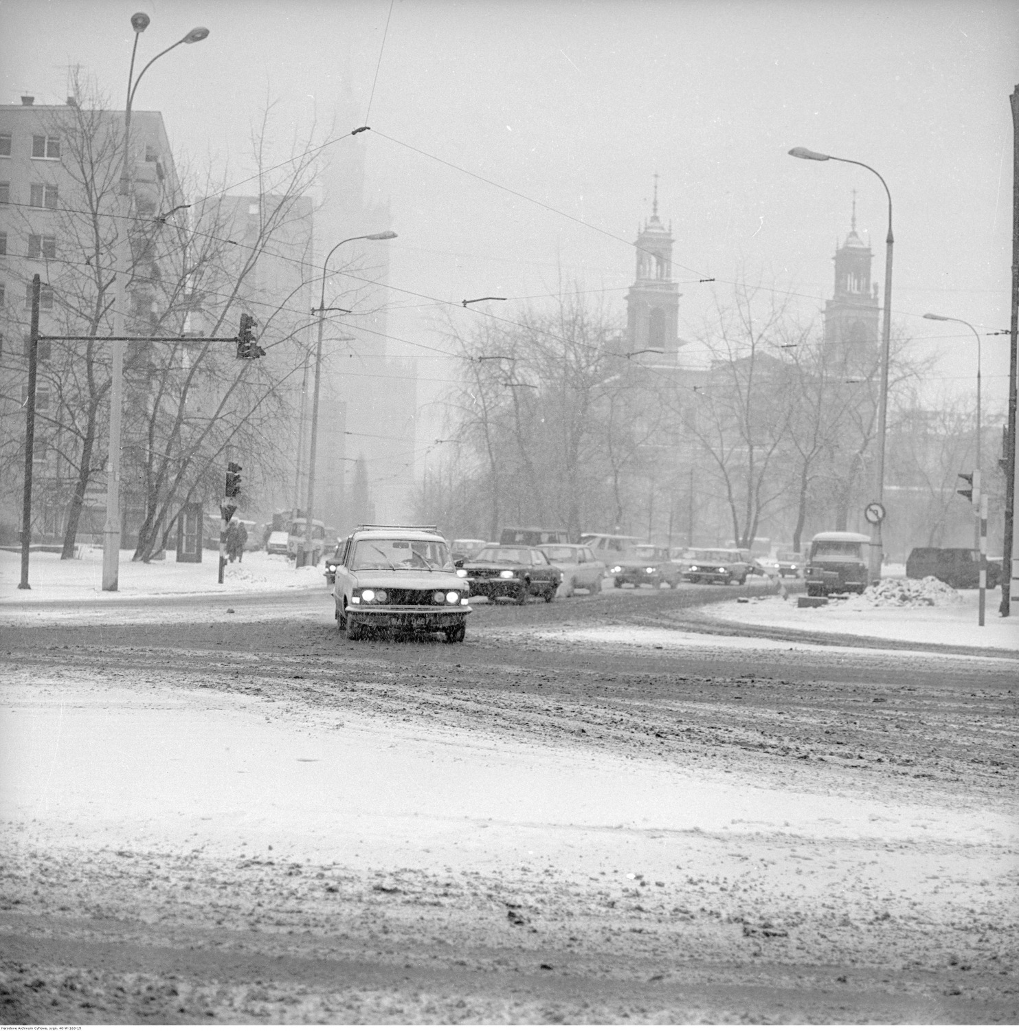15 stycznia 1981 , Widok na pl. Grzybowski z ul. Grzybowskiej. W tle kościół pod wezwaniem Wszystkch Świętych.Skomentuj zdjęcie