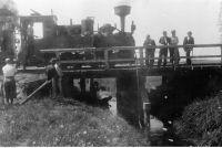Lata 1919-1939 , Parowóz kolejki wąskotorowej typu HF (Brigadelok) na linii Ostrołęka - Myszyniec wjeżdżający na most nnSkomentuj zdjęcie