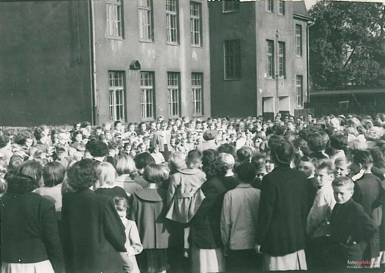 wrzesień 1957 , Rozpoczęcie roku szkolnego przed budynkiem szkoły. Źródło: Kronika szkoły nr 22.Skomentuj zdjęcie |