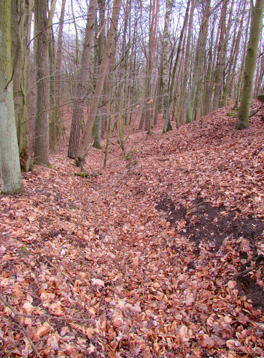 10 lutego 2019 , Obiekt polowy - transzeja biegnąca wzdłuż schronów bojowych - bardzo dobrze zachowany fragment przy schronie bojowym Gr.6.