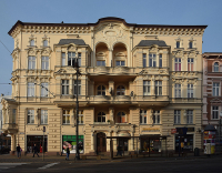 3 pobrania 343 odsłony 6 średnia ocen Poprzednie i następne zdjęcia piotr brzezina Obiekty widoczne na zdjęciu Gdańska 63 - Cieszkowskiego 2 więcej zdjęć (15) Architekt: Józef Święcicki Zbudowano: 1894 Zabytek: - Kamienica należąca do Józefa Święcickiego przy Gdańskiej 63, zbudowana przez niego w 1894 r w stylu eklektyzm, neobarok, neorenesans. ul. Gdańska więcej zdjęć (1607) Dawniej: Danzigerstrasse, Adolf Hitler Strasse, Aleje 1 Maja Ulica Gdańska – główna, reprezentacyjna ulica miejska położona na terenie Śródmieścia w Bydgoszczy. Początkowo ulica odgrywała głównie rolę komunikacyjną, jednak w II połowie XIX wieku zmieniła się w reprezentacyjny trakt mieszczański, "wizytówkę miasta", centrum handlu i rozrywki, gdzie koncentrowało się życie rozrastającego się Nowego Miasta, położonego na północ od rozlokowanego nad Brdą Starego Miasta w Bydgoszczy. W dwudziestoleciu międzywojennym była trzecią pod względem długości ulicą w Bydgoszczy, licząc łącznie 3,19 km[1]. Przebieg Ulica łączy Stare Miasto z północnymi terenami bydgoskiej aglomeracji. Rozciąga się od skrzyżowania z ul. Jagiellońską do ul. Armii Krajowej. Część południowa jest osią bydgoskiego Śródmieścia i najbardziej reprezentacyjną jego ulicą, natomiast część północna - od Stadionu Miejskiego, po granice miasta graniczy z Leśnym Parkiem Kultury i Wypoczynku i Lasem Gdańskim. Historia Dzieje i topografia Ulicę Gdańską wytyczono w latach 20. XIX wieku równolegle do zarzuconego w latach 1835-1850 dawnego traktu wiodącego do Gdańska (ul. Pomorskiej)[2]. Powstanie ulicy wiąże się z ekspansją zabudowy miasta na północ, co nastąpiło po 1816 r., gdy miasto zakupiło teren na wschód od traktu gdańskiego. Urządzono wówczas gościniec rozwinięty w linii prostej, o szerokości 26 metrów, a grunty położone po obu jego stronach podzielono na działki, które stały się własnością osób prywatnych[3]. Wcześniej zasięg przedmieścia ograniczał się do obszaru przyległego bezpośrednio do mostu na Brdzie, Bramy Gdańskiej, kompleksu Karmelitów i kościoła św. Ducha. Na polach obecnie zabudowanych kamienicami Śródmieścia mieszczanie bydgoscy urządzali coroczne zawody strzeleckie, które kończyły się przyznaniem zwycięzcy odznaki „Złotego Kura”[4]. W miejscu obecnego skrzyżowania ul. Gdańskiej, Dworcowej i Pomorskiej następowało rozwidlenie średniowiecznych traktów prowadzących do Koronowa (ul. Dworcowa) i Świecia (ul. Pomorska)[2]. Gwałtowny rozwój przestrzenny ośrodka miejskiego w kierunku północno-zachodnim nastąpił po 1850 r., po budowie dworca kolejowego na Bocianowie i włączeniu tego obszaru do miasta. Ulica Gdańska stała się wówczas centralną, reprezentacyjną arterią i osią handlową rozwijającego się nowego miasta (niem. Neue Stadt)[3]. Nierozerwalnie związane z rozwojem ulicy było wytyczenie i zabudowa ciągów ulic poprzecznych i równoległych do ul. Gdańskiej, umożliwiających jej połączenie z dzielnicami Śródmieścia położonymi po jej stronie zachodniej (Bocianowo) i wschodniej (Grodztwo, Bielawy, Osiedle Leśne). Zasadnicza sieć ulic przyległych powstała w 2. połowie XIX wieku i w pierwszych latach XX stulecia[2]. Jedynie pokrywające się z dawnymi traktami ulice: Focha, Jagiellońska, Dworcowa i Pomorska, podobnie jak początkowy odcinek Gdańskiej, swym rodowodem sięgają wieków średnich[2]. Szczególnie ważnymi etapami w kształtowaniu się ulicy było wytyczenie Placu Wolności w 1854 r. i Alei Mickiewicza w 1903 r., ponieważ zaważyły one na szczególnie reprezentacyjnym charakterze odcinków ul. Gdańskiej w tych rejonach. Na Placu Wolności powstała w 1876 r. pierwsza miejska fara ewangelicka, w 1893 r. postawiono konny pomnik cesarza Wilhelma I, a w 1904 r. monumentalną fontannę Potop[2]. Po 1854 r. w pewnym oddaleniu od miasta po zachodniej stronie ulicy[5] utworzono plac ćwiczeń ze strzelnicą dla wojska, co zapoczątkowało rozwój tzw. dzielnicy koszarowej. W 1861 roku ulica Gdańska na wysokości ul. Artyleryjskiej została przecięta torami linii kolejowej prowadzącej do Torunia, która odcięła obszary wojskowe. Dopiero po likwidacji przejazdu w latach 30. XX w. i rozwoju osiedla Leśnego nastąpił dalszy rozwój ulicy w kierunku północnym. Ulica podupadła po II wojnie światowej. Dopiero po 1996 r. została poddana stopniowej rewitalizacji. W 1998 r. na początkowym odcinku ulicy (do Placu Wolności) znacznie ograniczono ruch kołowy, w latach 2002-2007 dokonano modernizacji nawierzchni chodników i częściowo jezdni i torowisk oraz wymieniono oświetlenie na stylowe. Trwają także prace przy odnawianiu elewacji kamienic oraz zabudowie plombowej. W 2005 i 2006 r. na ulicy stanęły dwie rzeźby autorstwa Michała Kubiaka: „Wędrowiec” i „Marian Rejewski na ławeczce”. Nazwy Ulica została ukształtowana w dwóch etapach, co wiąże się z tym, że początkowo posiadała dwie nazwy[2]. Jej pierwotny odcinek do zbiegu z ulicą Dworcową, pochodzący z XIV wieku, nosił miano ulicy Gdańskiej (niem. Danzigerstraße), natomiast jego przedłużenie, wytyczone po 1820 r. - Szosa Gdańska (niem. Danziger Chaussee)[2]. Później wraz z rozwojem zabudowy, ulicą Gdańską nazywano kolejne odcinki traktu (w 1879 r. do wysokości ul. Powstańców Warszawy). Od 1977 r. ulica sięgnęła obecnych granic administracyjnych, w związku z czym ulicą Gdańską nazywa się dziś cały trakt wiodący od Starego Miasta aż do północnej granicy Bydgoszczy[2]. Nazwy ulicy w przekroju historycznym[6]: 1820-1920 – Danzigerstraße / Danziger Chaussee 1920-1939 – Gdańska 1939-1945 – Adolf-Hitler-Straße 1945-1990 – Aleje 1 Maja od 1990 – Gdańska Parcelacja Z chwilą urządzenia ulicy Gdańskiej, grunty położone po obu jej stronach podzielono na działki, które stały się własnością osób prywatnych. Prawdopodobnie większ