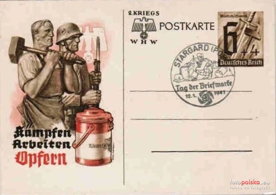 1941 , Pocztówka propagandowa z czasów III Rzeszy – Stargard i. Pom., 1941