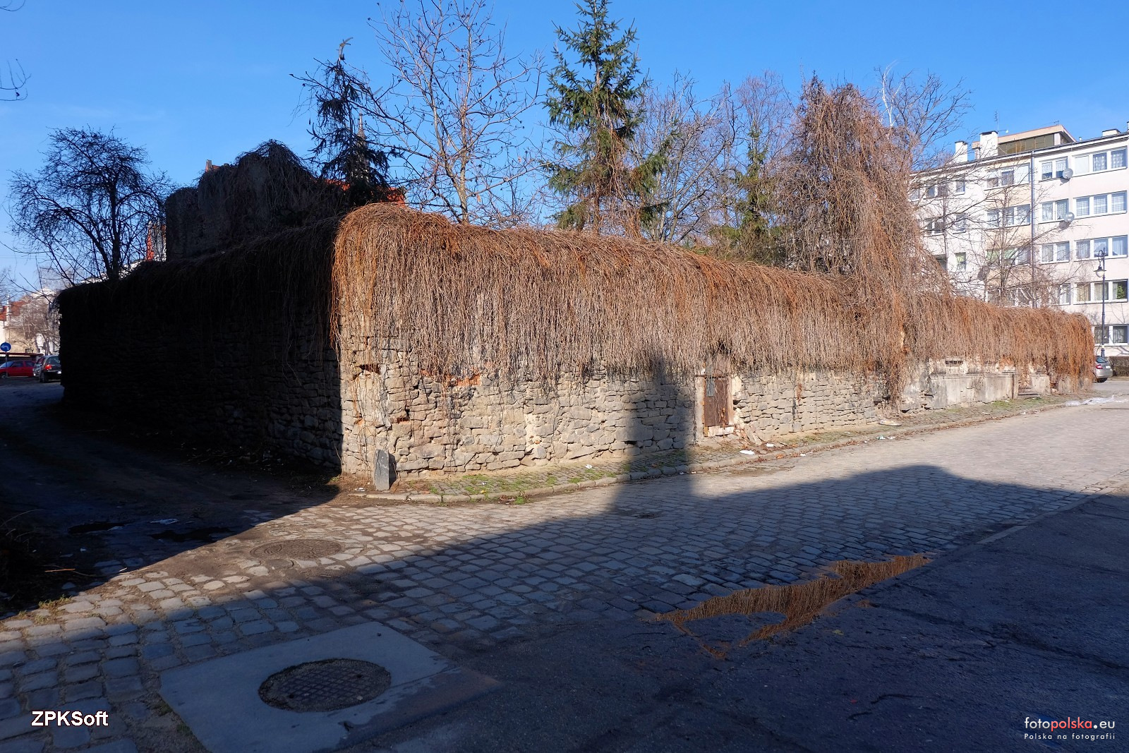 6 marca 2019 , Pozostałości po kamienicy należącej niegdyś do właściciela browaru. Przetrwała wojnę a potem została rozebrana do poziomu parteru, teraz stoją jedynie mury. Jeszcze kilka lat temu ruina była zamieszkała przez starszą kobietę. Widok od strony wschodniej.Skomentuj zdjęcie