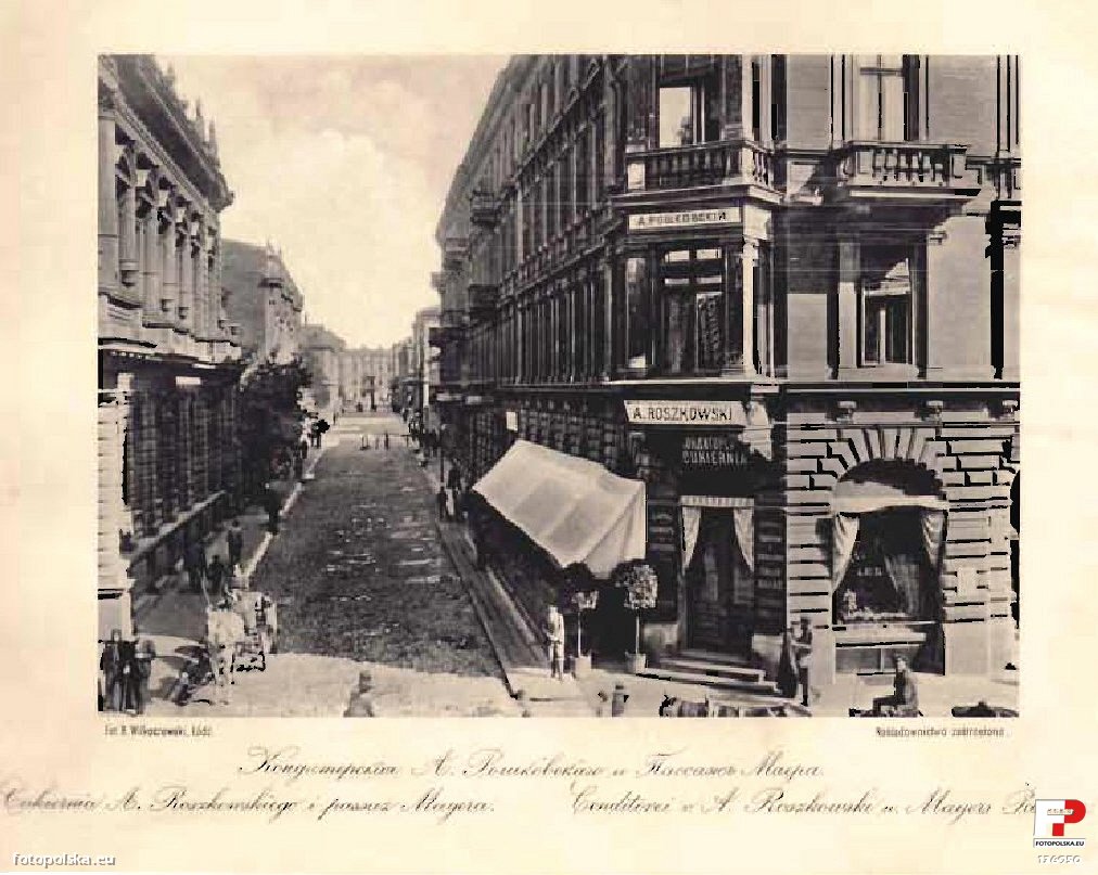 1896 , Łódź. Cukiernia A. Roszkowskiego na pasażu Mayera (ob. ul. Moniuszki). [B. Wilkoszewski, Widoki Łodzi, Warszawa 1896]Skomentuj zdjęcie |