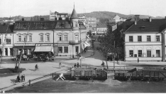 1938 , Skrzyżowanie obecnej ul. Dworcowej z ul. 1 Maja.Skomentuj zdjęcie