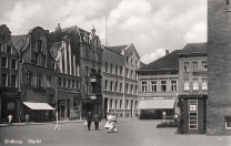 Lata 1935-1940 , Widok na dzisiejszą ulicę "Ratuszowa", kamienice po lewej nie istnieją, w ich miejscu jest "Skwer Miast Partnerskich", w głębi widać Urząd Miasta.Skomentuj zdjęcie |