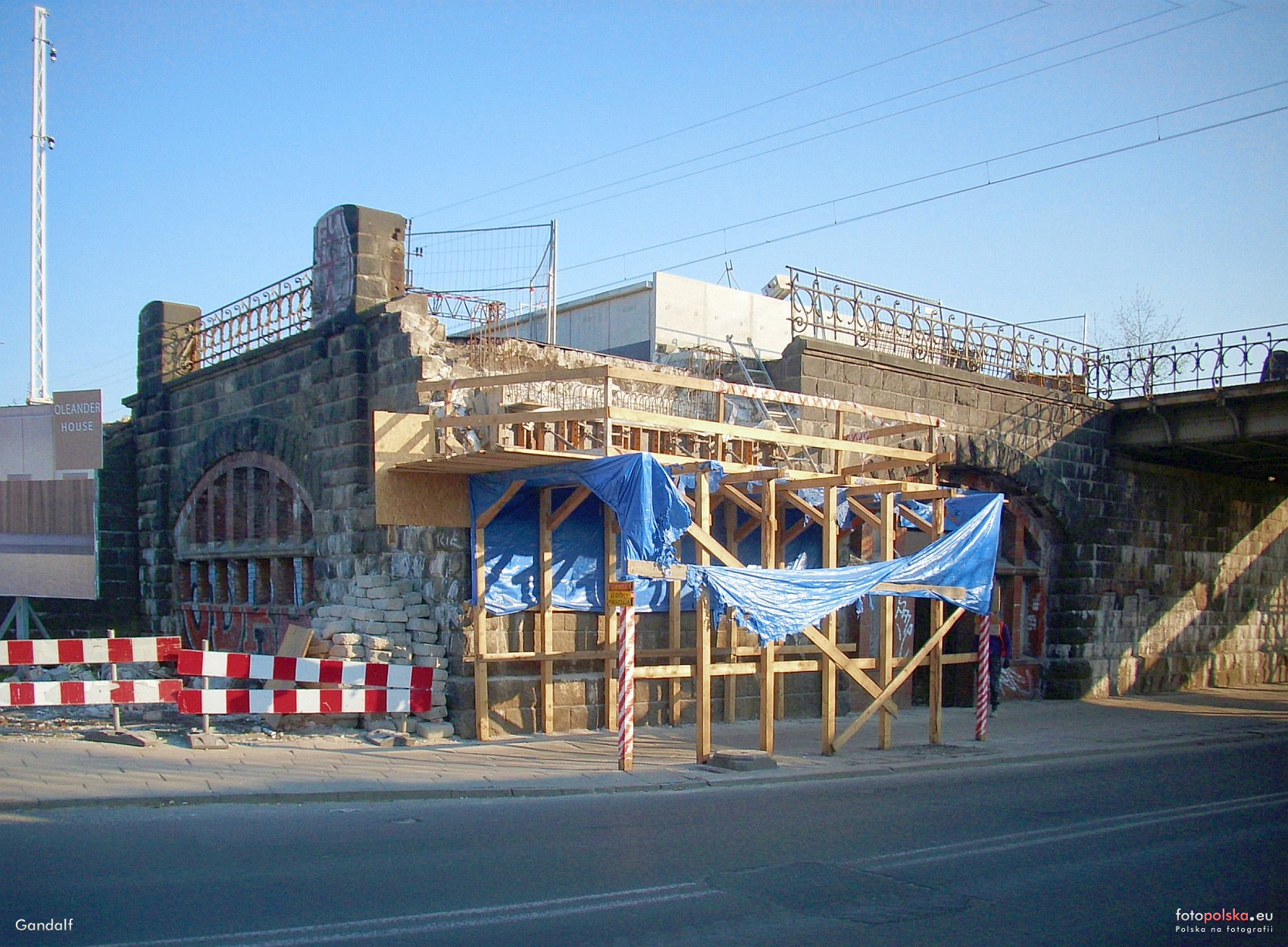 8 kwietnia 2019 , Dworzec Opole Wschodnie, rozebrano górną część przyczółków wiaduktu dworcowego w celu ich wzmocnienia. Ponad przyczółkiem widoczny podwyższony peron dworca.Skomentuj zdjęcie