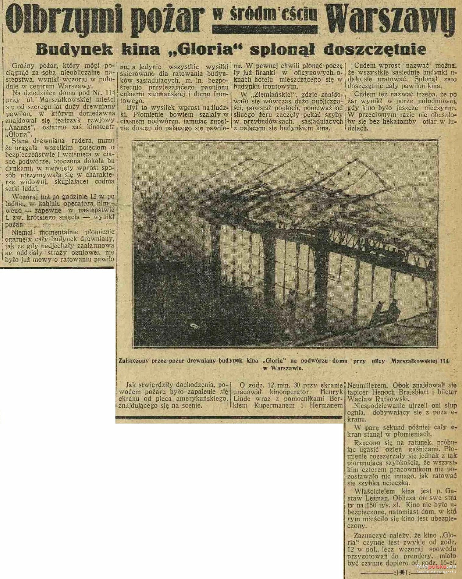 1935 , Artykuł o pożarze kina "Gloria". Źródło: Express Lubelski i Wołyński, 1935, nr 39Skomentuj zdjęcie |