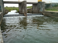 19 maja 2015 , Pod Kładką Oporowską jest mała zastawa, poniżej której woda jest głębsza, tu czasem można spotkać kąpiących się ludzi, ale znacznie częściej - pieski. Ten labrador ma na imię Bejrut.Skomentuj zdjęcie