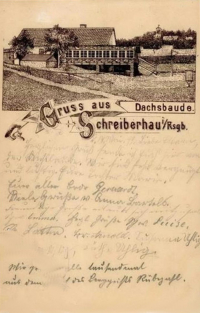 Lata 1890-1895 , Jedna z wcześniejszych pocztówek ze schroniskiem Dachsbaude.Skomentuj zdjęcie |